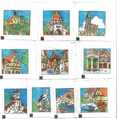 Le nombre de papiers composant la série est indiqué sous chaque photo.
